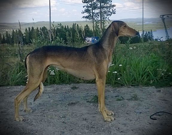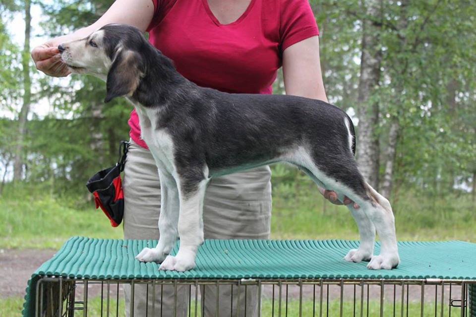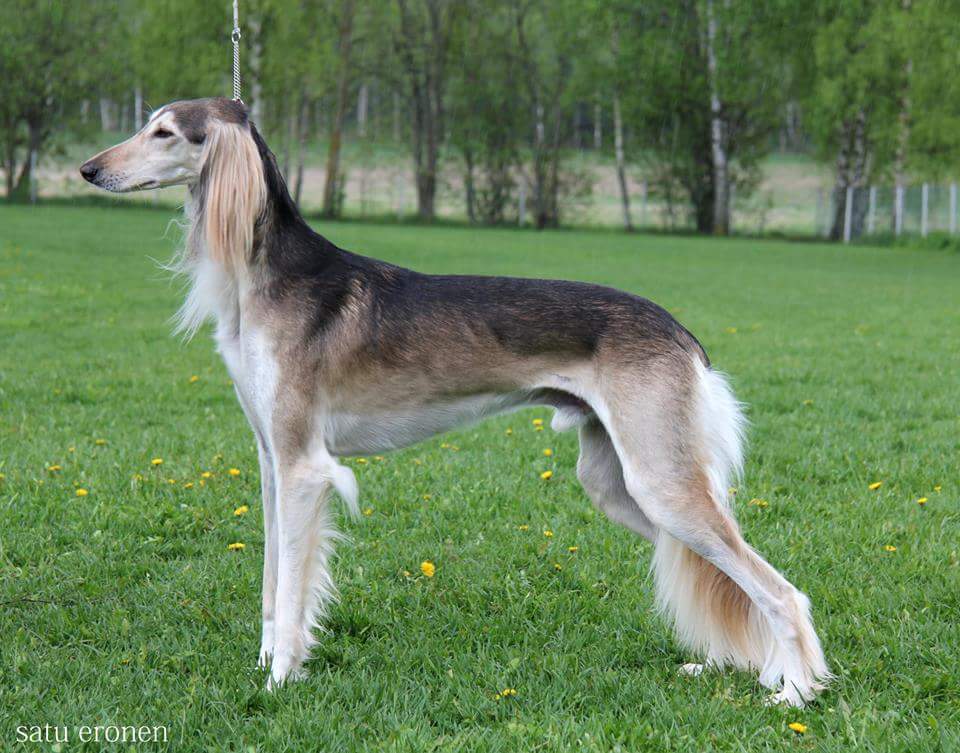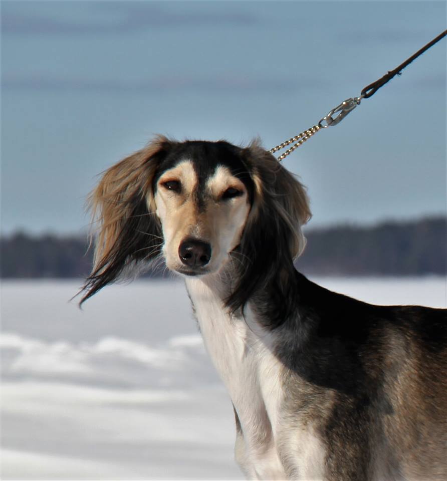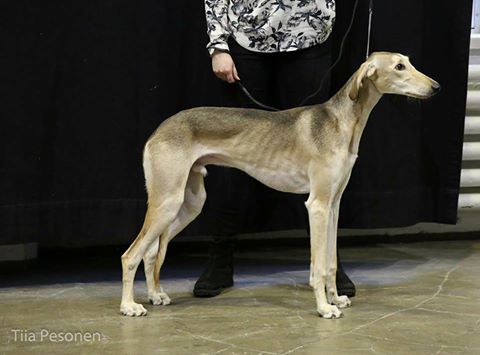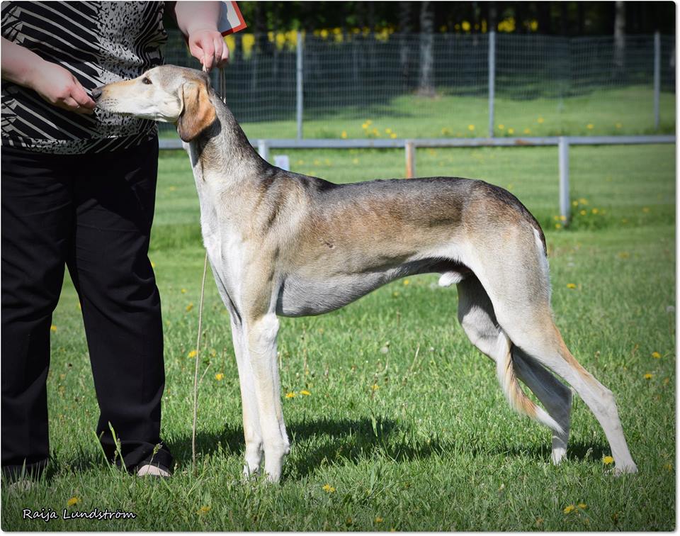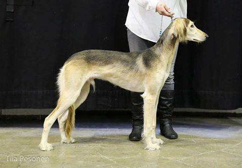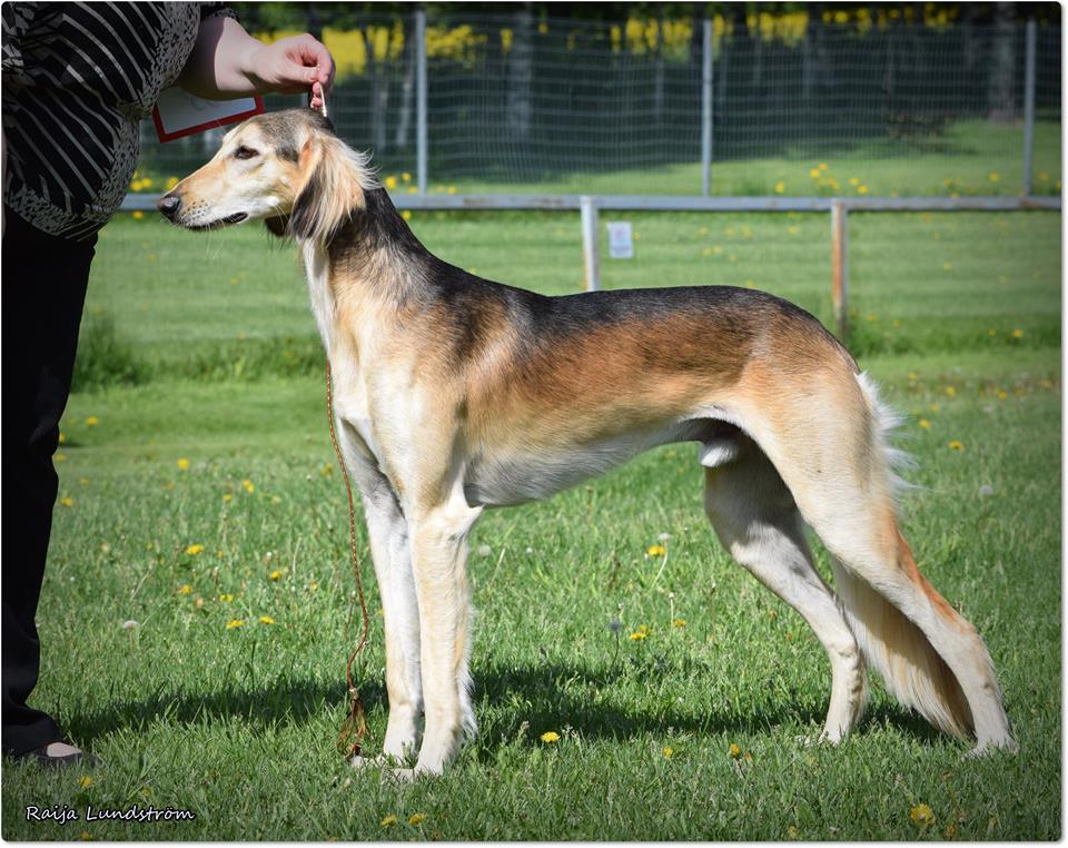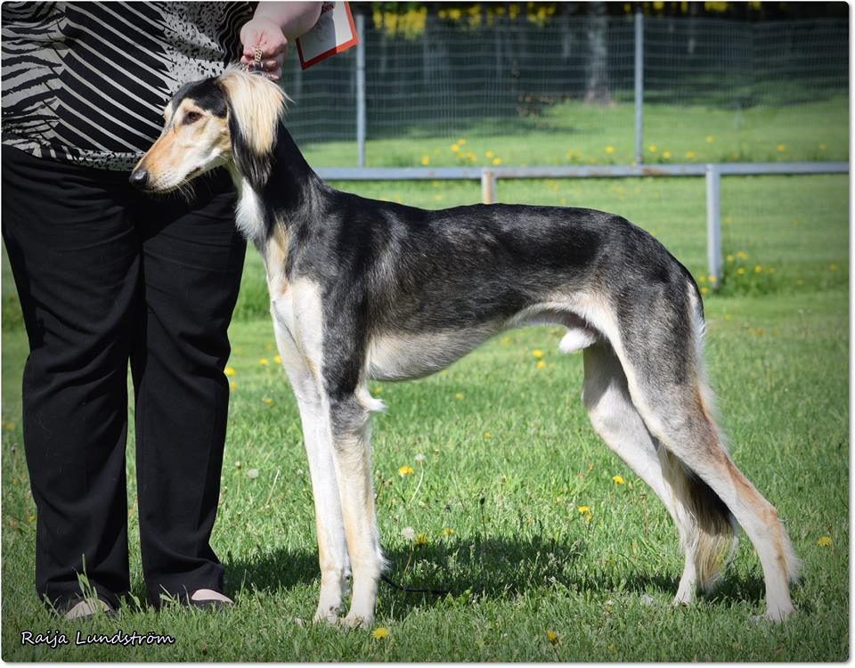 Parents: FI & LV Ch  Sunfire Harigat and our Nipsu FI & EST LC CH, Nordic Championship 2013 Shadmore Nimueh.  # 1 Bitch Lure-Courser of the year 2013  # 1 Lure Coursing newcomer Saluki bitch in 2013 in Finland. She has also got 2 CACs at the show rings.